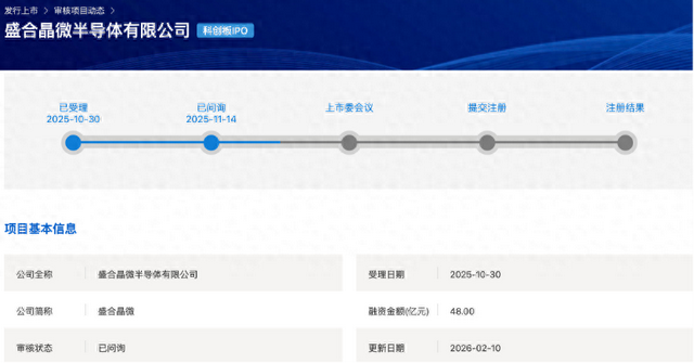 具体来看,盛合晶微、燧原科技分别于2月10日、2月11日审核状态更新为已问询。